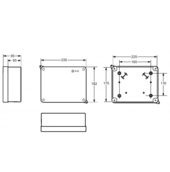 IP55 Plastic Junction Box; frame and base in ABS. IK08 rating, UV protection. For Indoor and Outdoor use. Windows Transparent in PC.